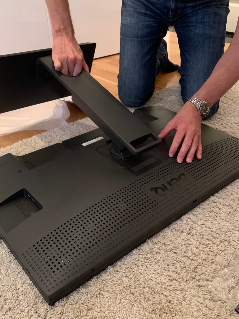 The monitor came very well packed with everything you need to release its full potential in everyday use. It comes readily calibrated and even with a full calibration report for your specific display. This shows how seriously Benq takes these matters. All cables, the shading hood and the Benq puck was included. More on that later. It even came with a device for cleaning the special matte surface of the display. Set up was self-explanatory.