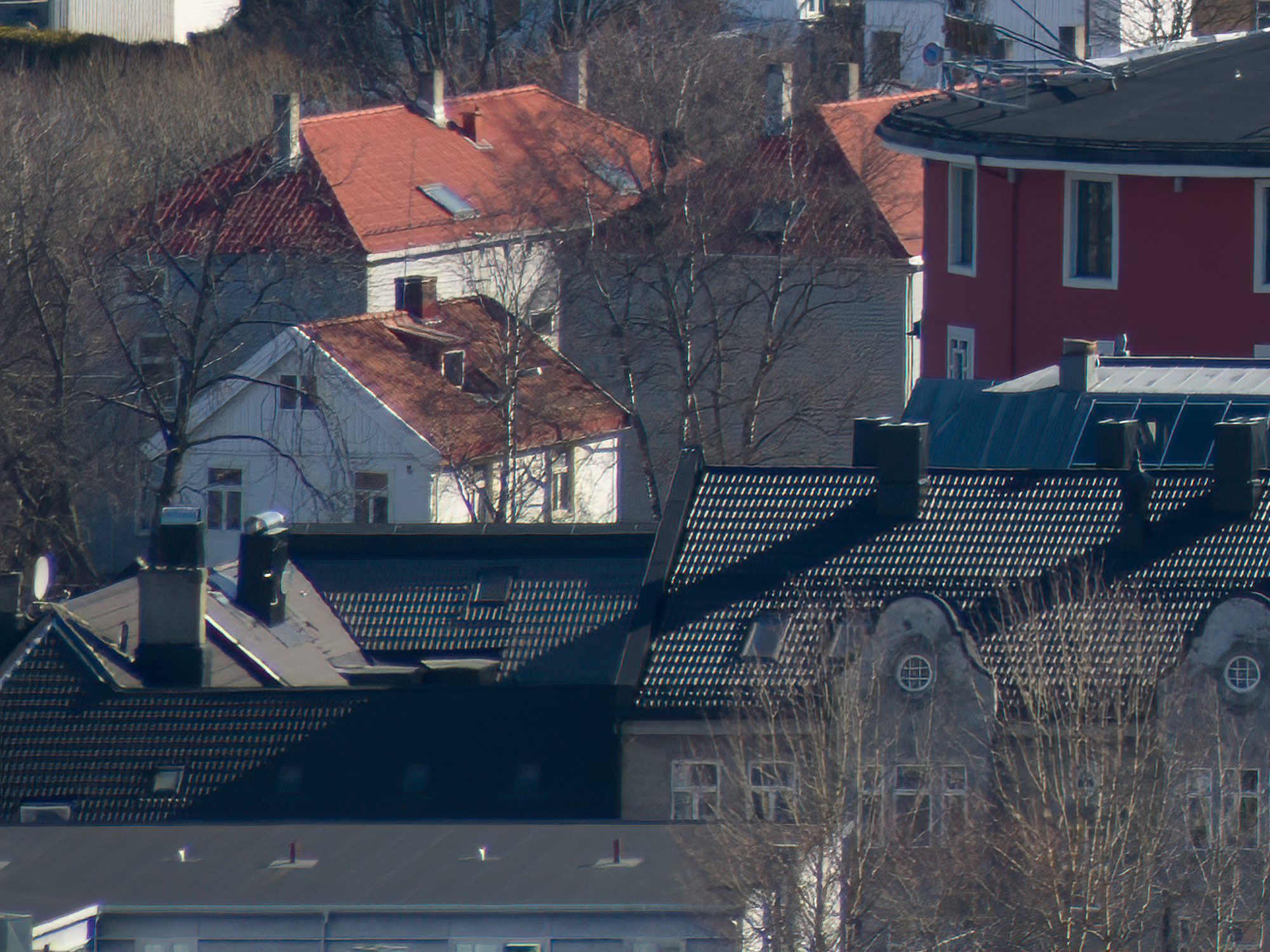 As for vignetting, I’m sure you have noticed the dark corners in the unedited test-image already. I was a bit surprised by that, as the Series E 135mm f2.8 had very little vignette. There is ,however, no hard vignette, so it should be correctible. After some trial and error I came up with a barely acceptable result. Here, I used Amount 60 and Midpoint 90. It was not very easy to correct the right place and amount, and I don’t think I nailed it 100%. There might be some need to adjust brightness locally as well with a brush, linear or radial mask to get a perfect result. So much correction also comes at a price. In more challenging conditions, this could give much more noise in the extreme corners.
