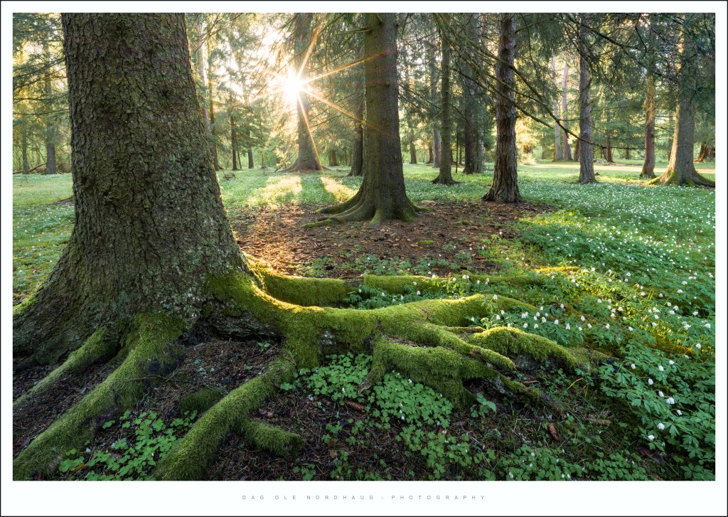 My favorite time of day out there is around sunrise. The soft pre-sunrise light has some very nice qualities to it. It is warm without being harsh, and contrasts the blue shadows nicely. Side-lit tree-trunks get nice color and definition in the bark, at the same time as the sidelight gives the scene nice 3D-properties.