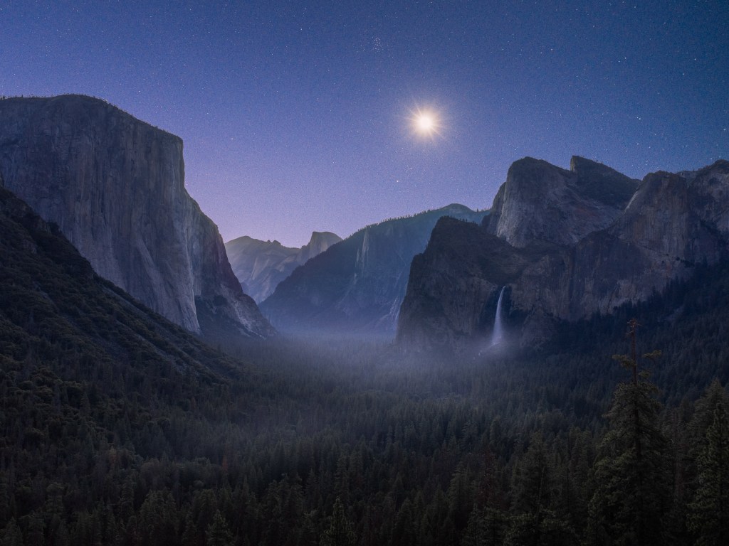 The image below is a composite. I set up my Hasselblad H6D-100c with the HC 50mm and my Hasslblad X1D with the Nikkor 20mm f1.8G side by side at Tunnel view. I used the image of the landscape from my H6D but chose the image of the sky (captured simultaneously) from the X1D and Nikkor lens, as I found the moon to show the best “moonstar” with that lens.