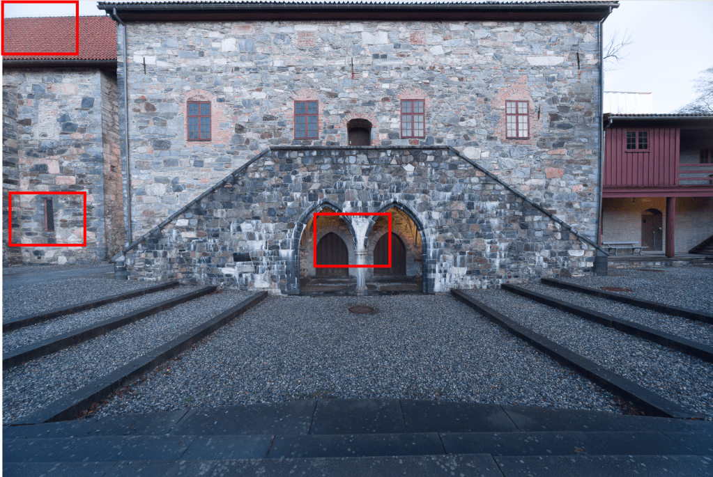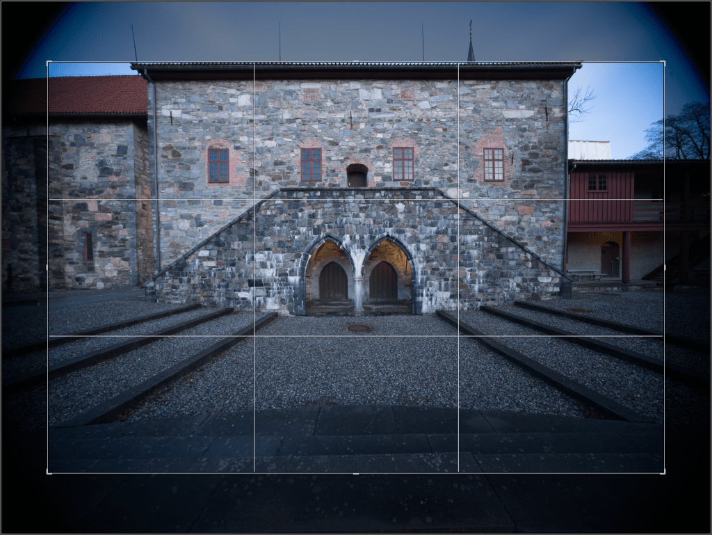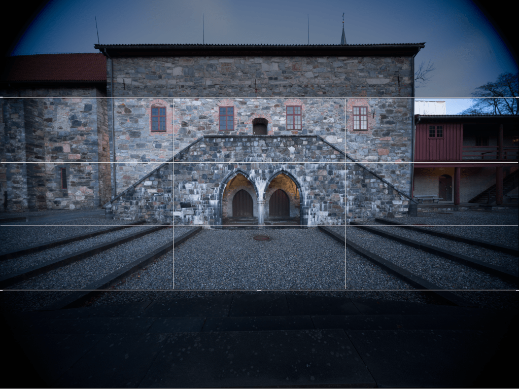 As usual with my test-shots, the artistic value is not important. I just took a few images representative for how I would use this lens in real life. As straight lines are paramount in any image involving buildings, stitching a pano here would require a lot of work in post. So, architecture is one mode where I see the use for an ultrawide lens. The high contrast and details in the building makes this scene suitable for evaluating the technical properties of the lens. All images were taken with the Hasselblad X2D mounted on a tripod, electronic shutter, 2 sec timer. Manual focus on the building straight ahead in 100%. All images captured at f11. I chose f11 for reasons not shown in this post. I evaluated center, edge and corner sharpness on all apertures from f5.6 to f22. Center sharpness peaked at f8 and border sharpness at f16. However, the best all-over sharpness was found at f11. There was minimal improvement in vignetting from f5.6 to f22, and again, I landed on the compromise of f11. As mentioned above, depth-of-field is so huge at 12mm, that you really don’t need to think much about the relationship between aperture and depth-of-field, at least not for subjects a few meters from the lens.
