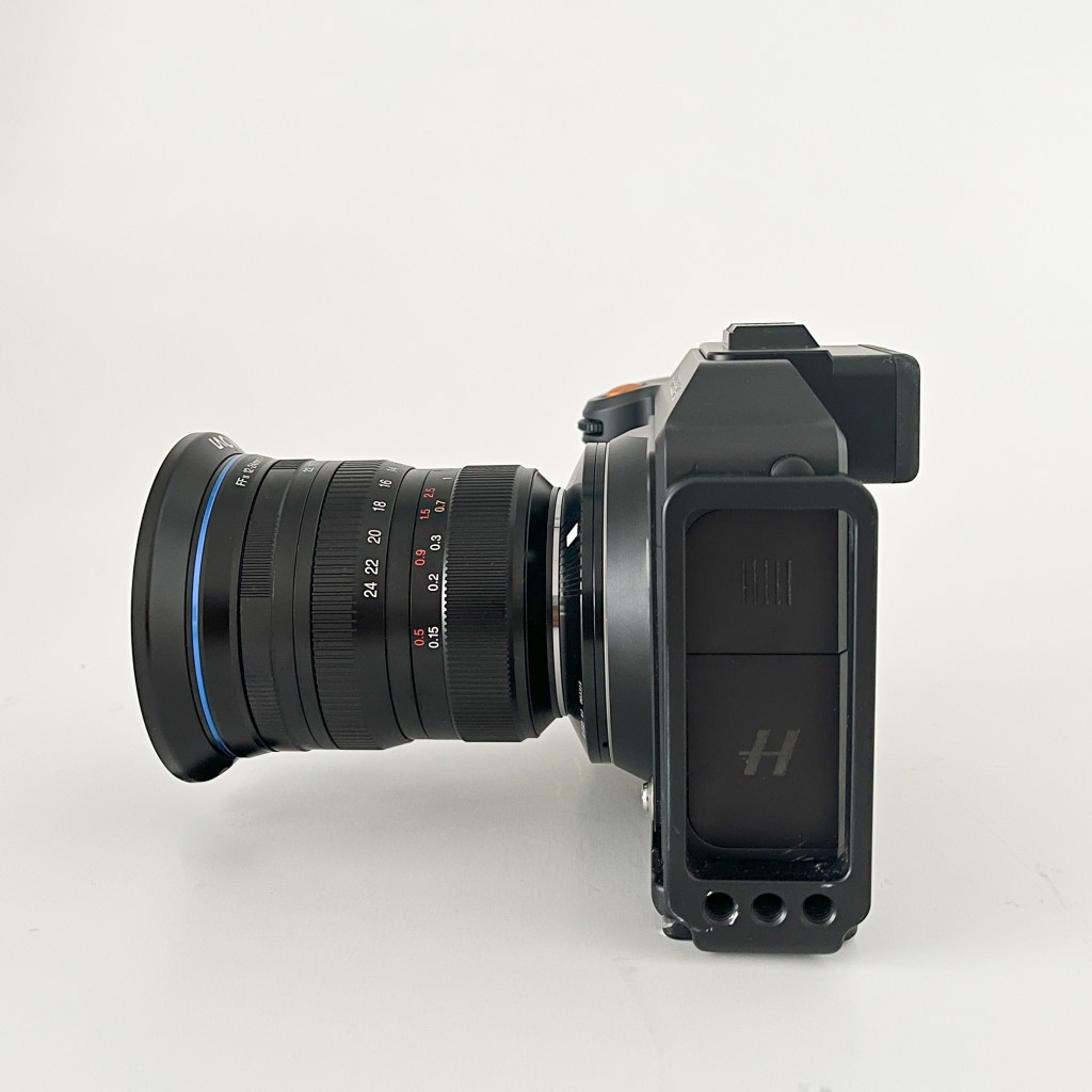 For a couple of years I have been playing with the idea of getting an ultrawide lens for my Hasselblad X2D. As much as I love my XCD 21, sometimes it just isn’t wide enough. Especially for the widest panoramas. I could always stitch a pano, but as discussed in my last post (“Ultrawide lenses for Hasselblad X?”), stitching isn’t always a perfect option. Particularly when there are moving elements in the frame, rapid change in light, or when straight lines (horizon, buildings etc.) are important. So, I have researched a few different options and landed on the Laowa 12-24mm f5.6 zoom-lens. This is a full-frame lens. No medium format lenses that wide are available. The image circle is quite a lot smaller than we are used to with the XCD-lenses, so there will be a hard vignette and the need to crop the files from the 33x44mm sensor.