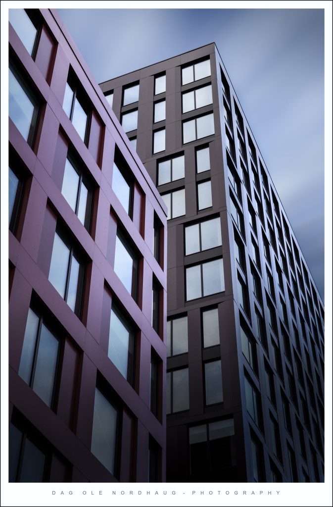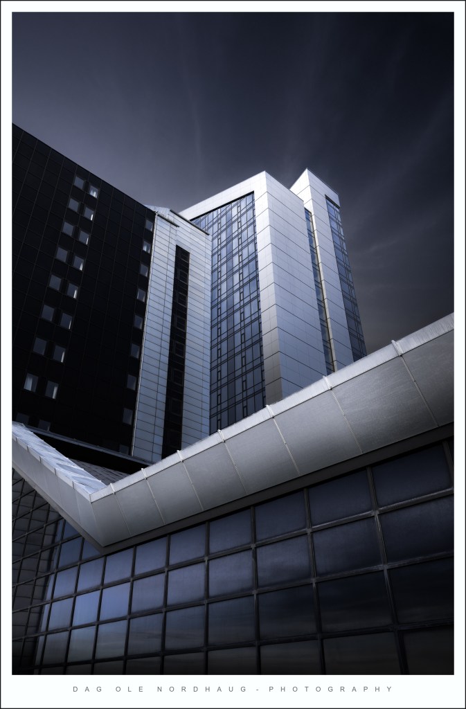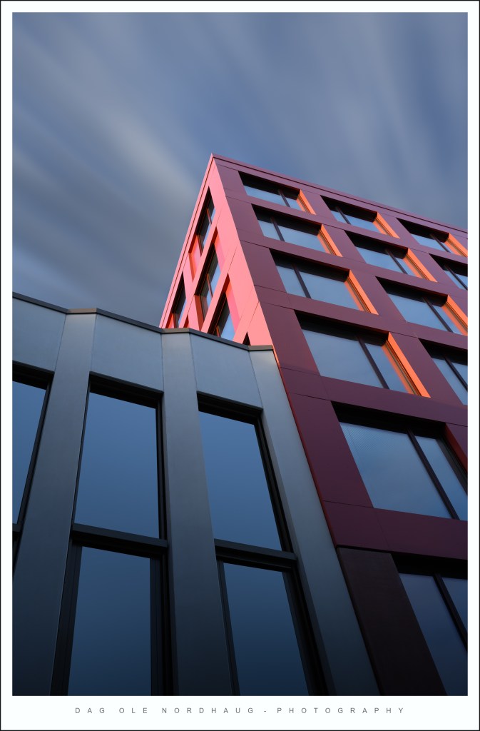 This year was no exception. My hometown of Trondheim is a beautiful city with old cobblestone streets and buildings full of character. There’s even a lovely river flowing through, making it possible to work with reflections. I have had a few good outings downtown and got some nice images from both our cathedral and the wharves by the river. However, I wanted to try something slightly different this year. I have searched out a few of the more modern buildings here, and played around with angles, light and long exposures. Also, these kind of images mostly need quite heavy processing to get the mood I want, so that has been great fun to. If you would like to know more about how I make images like this, both on location and with respect to postprocessing, let me know in the comments or drop me a message and I’ll consider making a separate post about that.