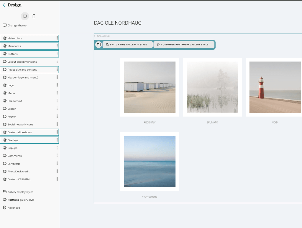 Enter Photodec (TM). A French company that ticked all the boxes for me. I went for the 14 days free trial, but already after 3-4 hours of playing around, I understood that this was my new host. Very easy interface for set-up, tons of customization-options (really, everything!), excellent display of my images (of course you can choose resolution! 🙂 ), and a very stable plugin for Lightroom. A big leap forward for me is that images and galleries are instantly updated from Lightroom. With my old host, there was always several hours delay before the web-page was updated. And best of all, they are fully integrated with my favorite professional lab, a company I have worked with for years, Whitewall.